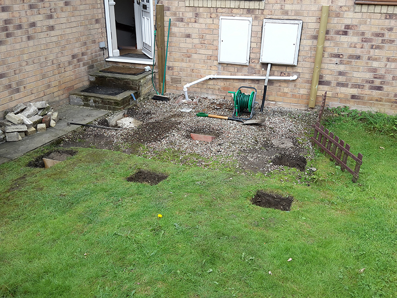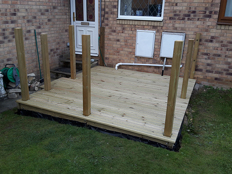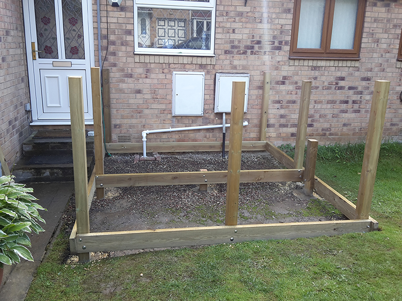 Extra care needed to be taken during the preparation of the site due to the presence of gas and electric services and so the holes for the deck support posts were all dug by hand with a trowel before the posts were concreted in place.