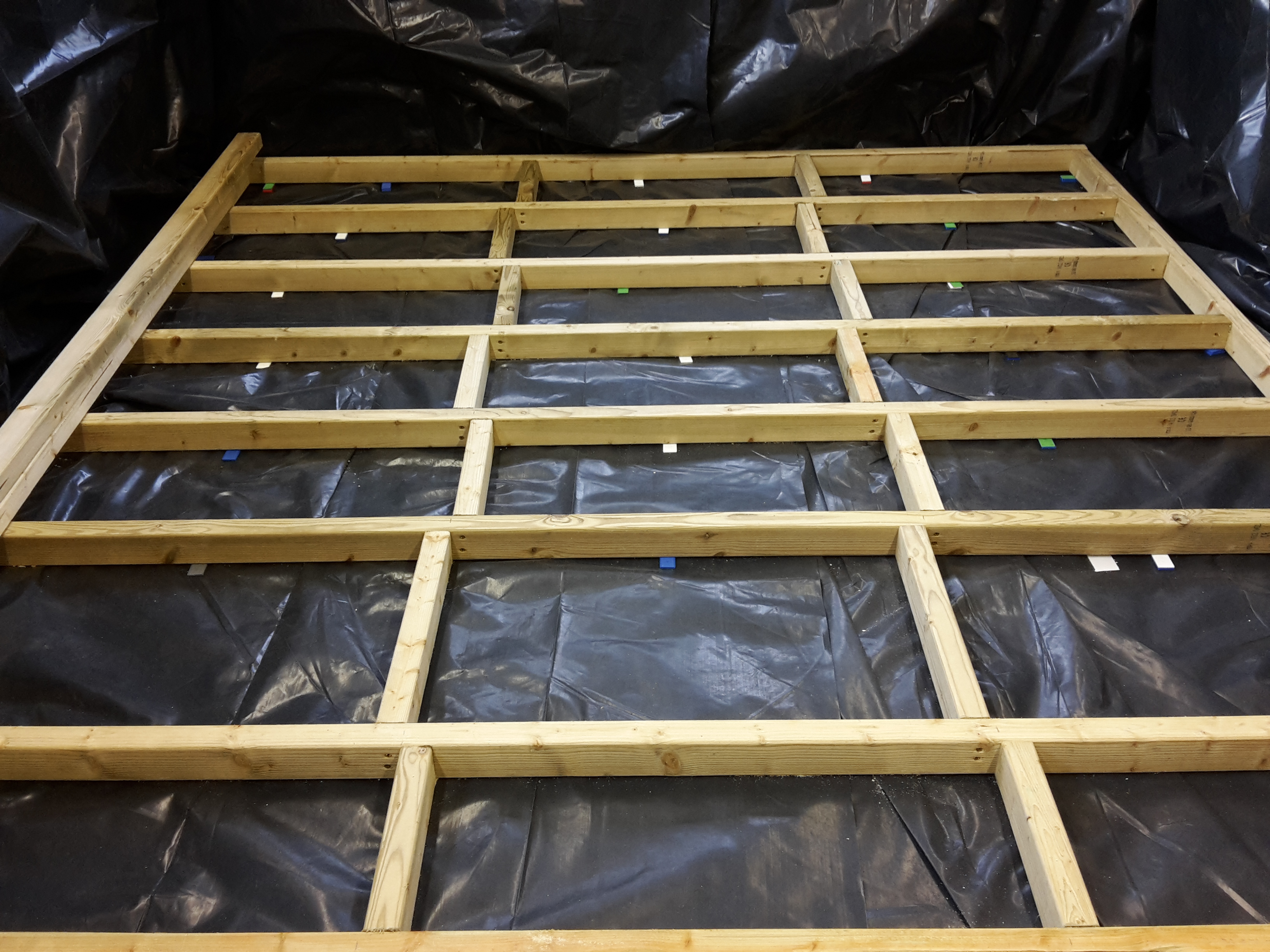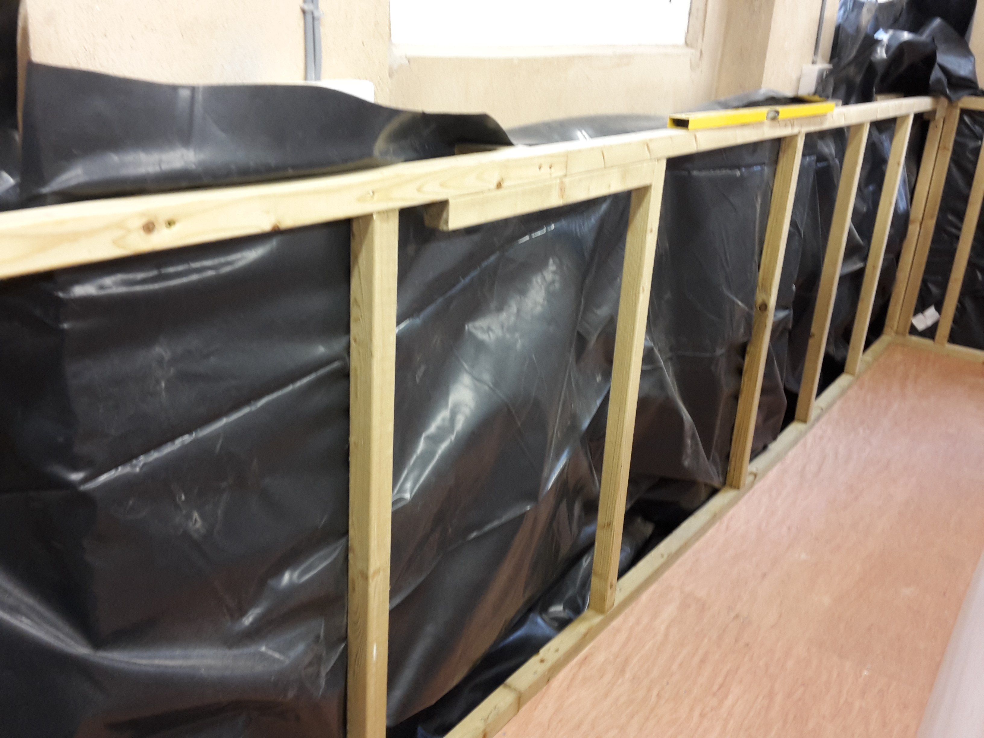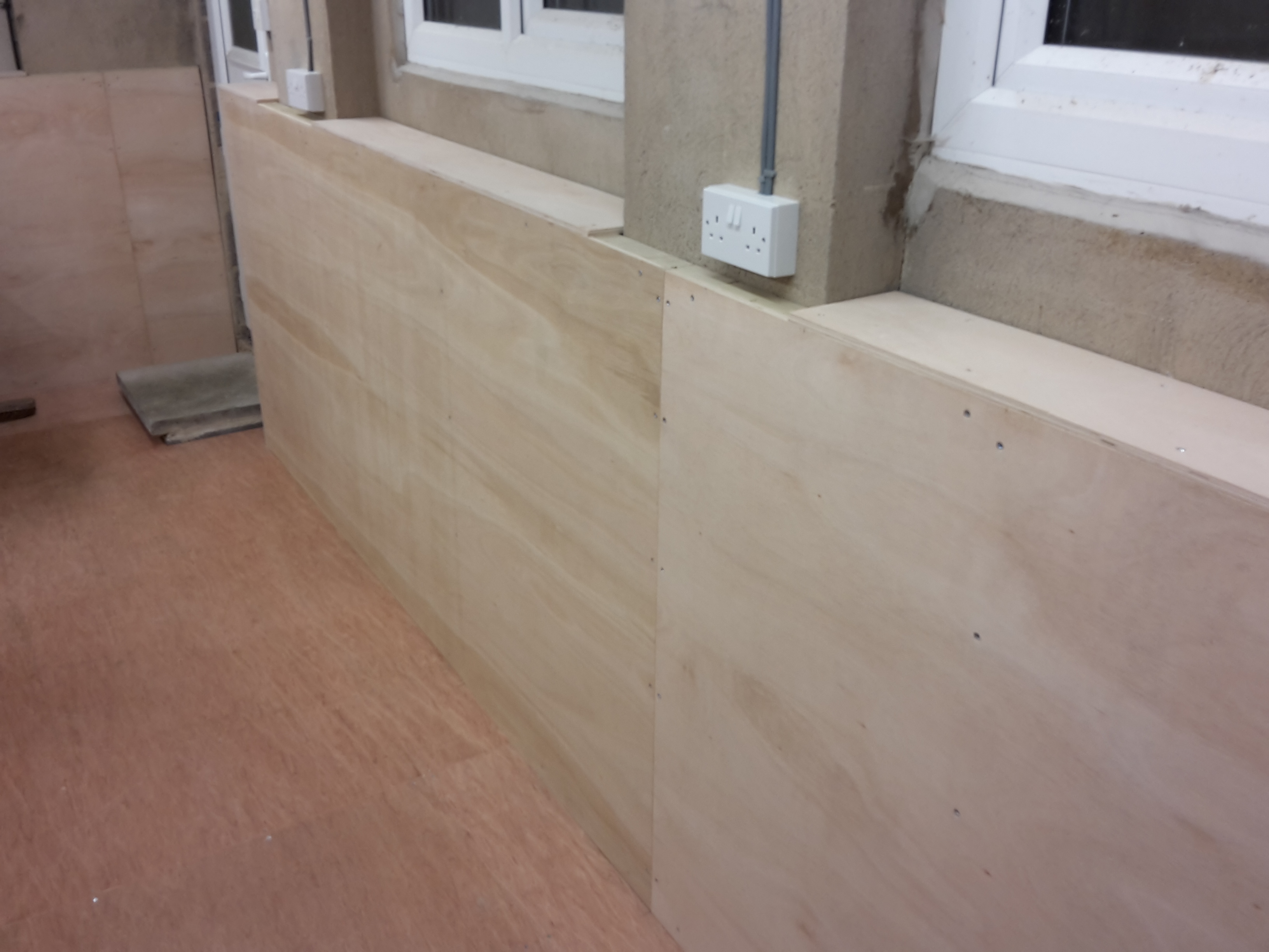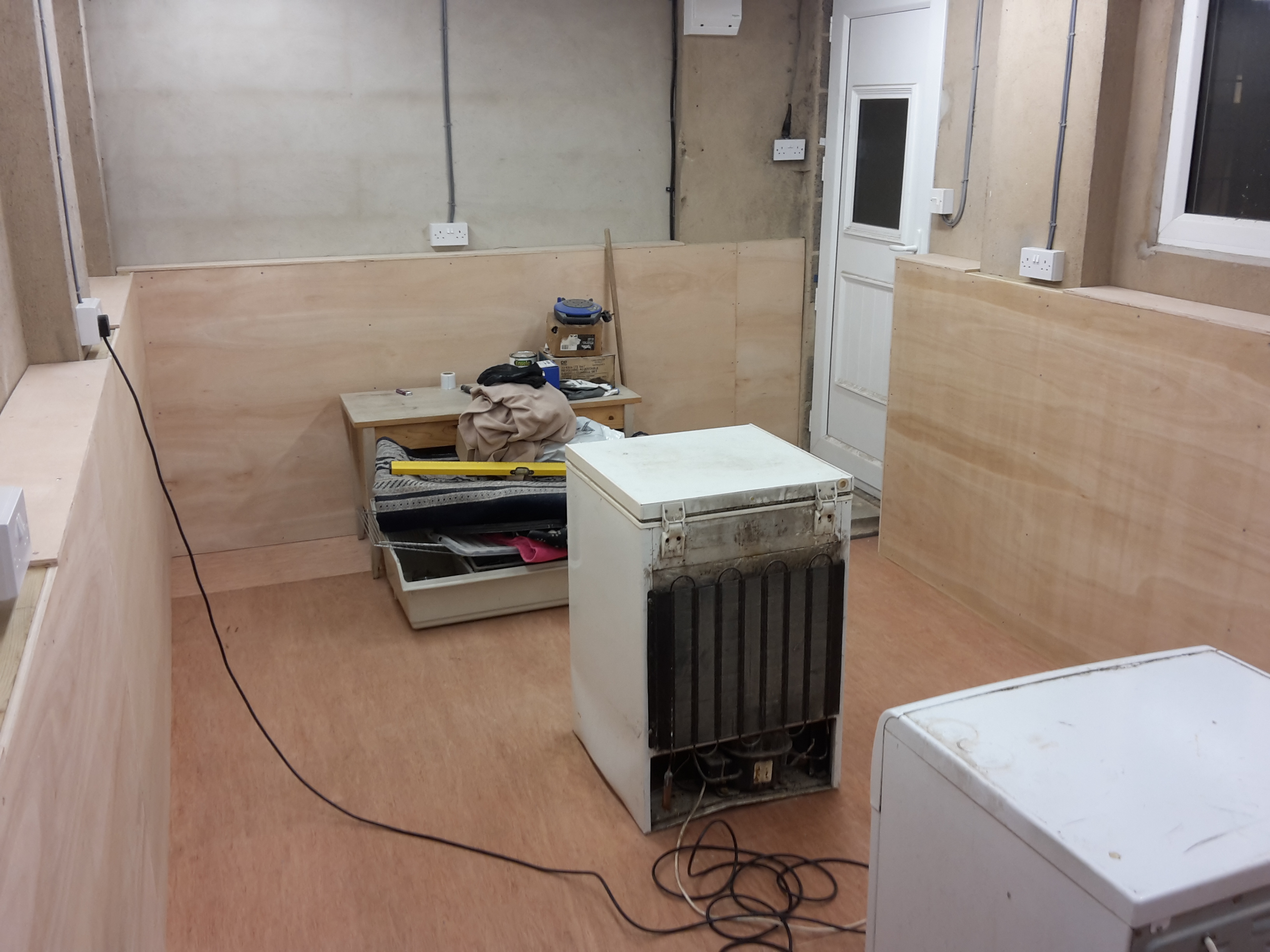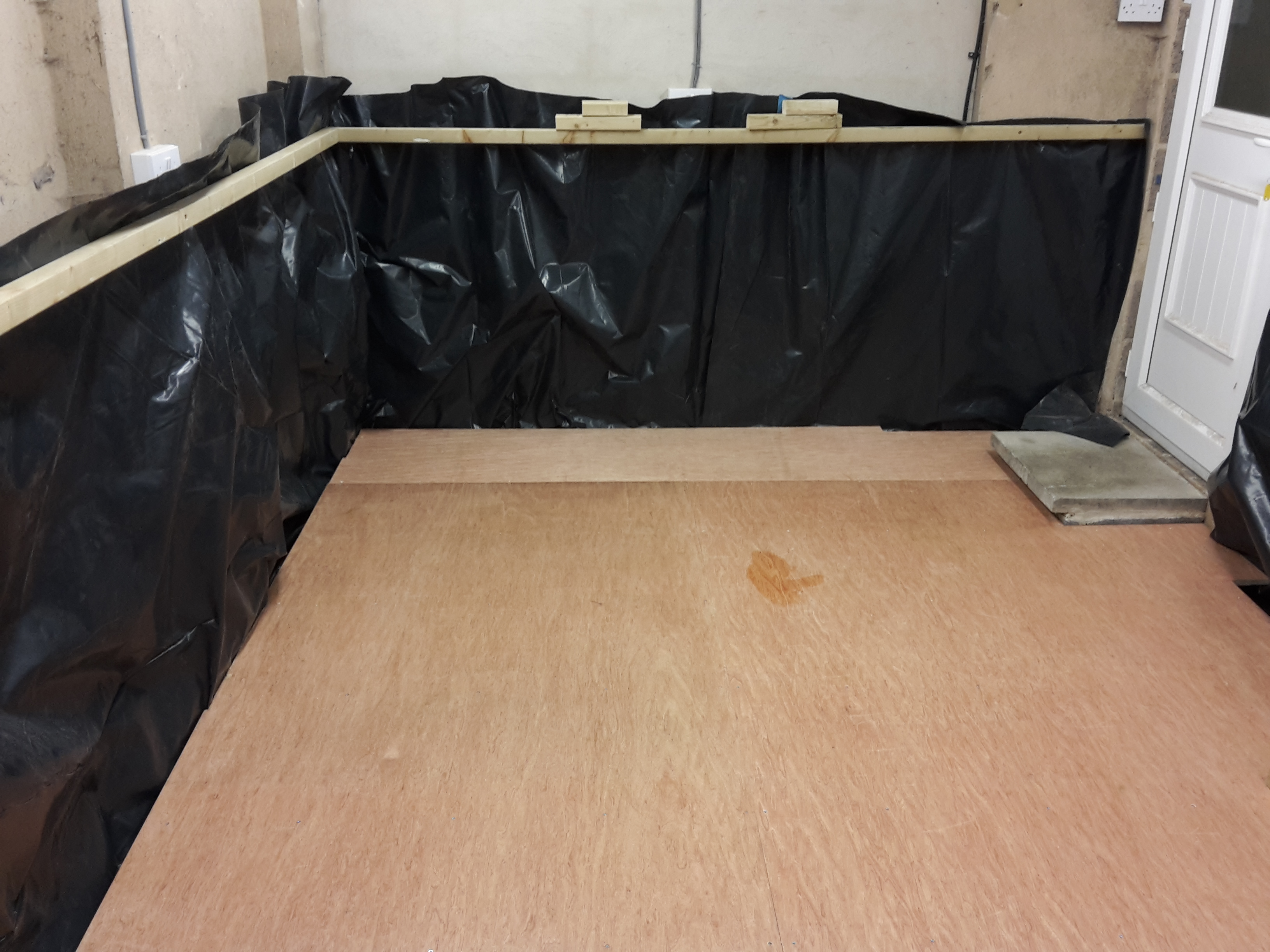 The latest project completed for a new customer (but an old friend!) of S. Bretherick Handyman Services in Leeds - installation of a plywood floor and wall linings in a garage/outbuilding. A damp proof membrane on the concrete floor running up the walls to the top of the panelling, with a treated timber subframe for the 18mm exterior grade plywood floor and 12mm wall panelling, gave a very tidy finished result which will protect any stored items from the cold/damp of the original floor and walls.