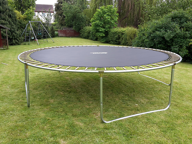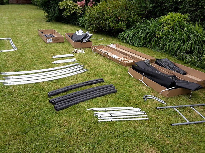 After much stretching of springs and bending of fibreglass net poles the end result was one fully assembled trampoline and one very happy, very bouncy (literally!) 7 year old!