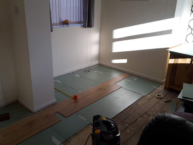 S. Bretherick Handyman Services was asked to fit a laminate floor in a 35m2 living room to replace the existing engineered wood floor which had failed (excessive creaking, 'springiness' and separated joints) after only 2 years.