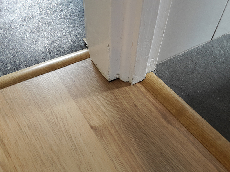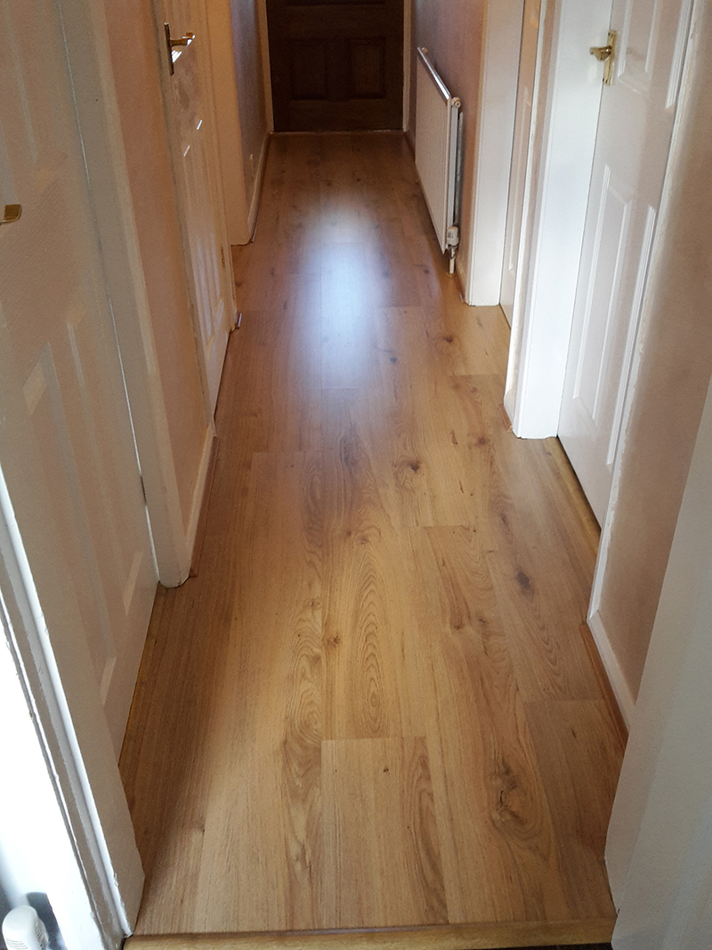 The customer was so pleased that they asked for a laminate floor to be fitted in the hallway as well. This was an awkward installation due to 5 doorways into the hall. All the door frames were undercut to allow the laminate floor to slide underneath and, again, the customer was delighted with the end result.